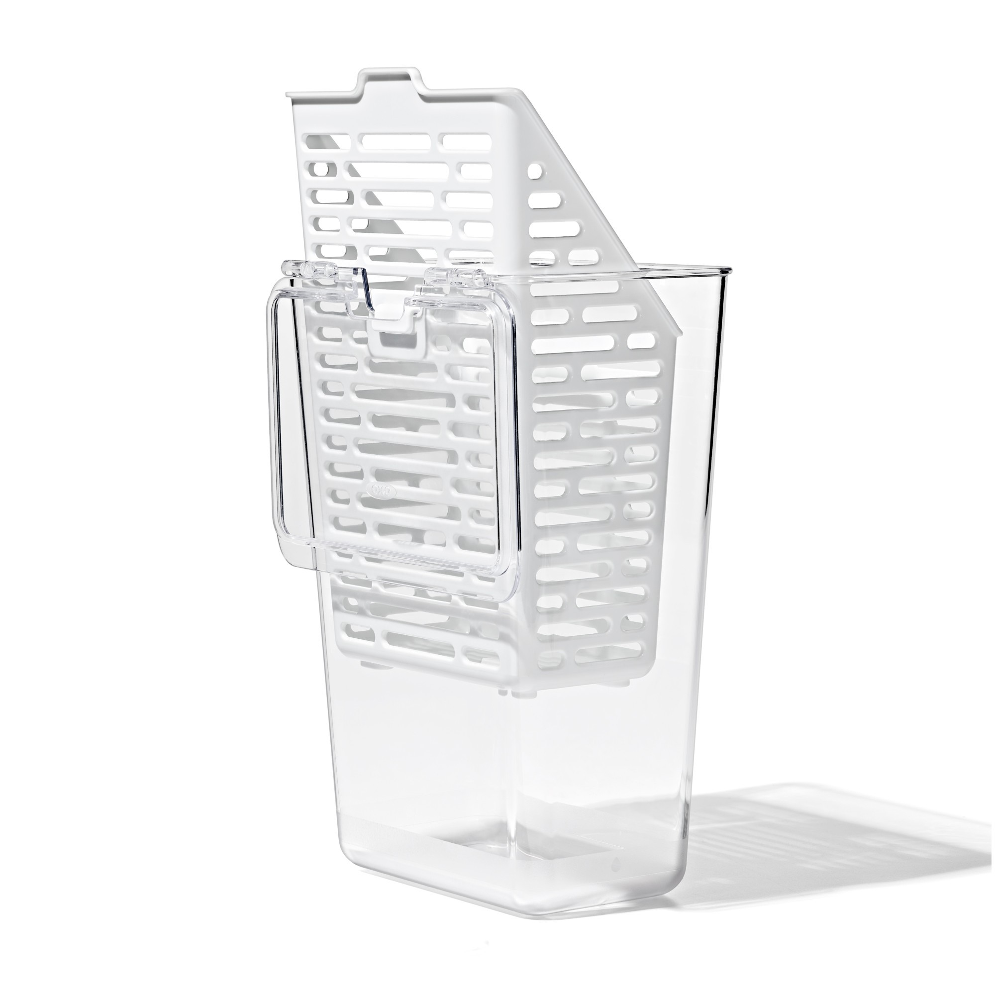 Amikor készen állsz a fűszernövények felhasználására, a csuklós fedél könnyen nyílik, a kivehető kosár pedig úgy van kialakítva, hogy akasztható legyen. A keskeny kialakításnak köszönhetően szépen elfér a hűtőszekrény polcain vagy ajtaján.
