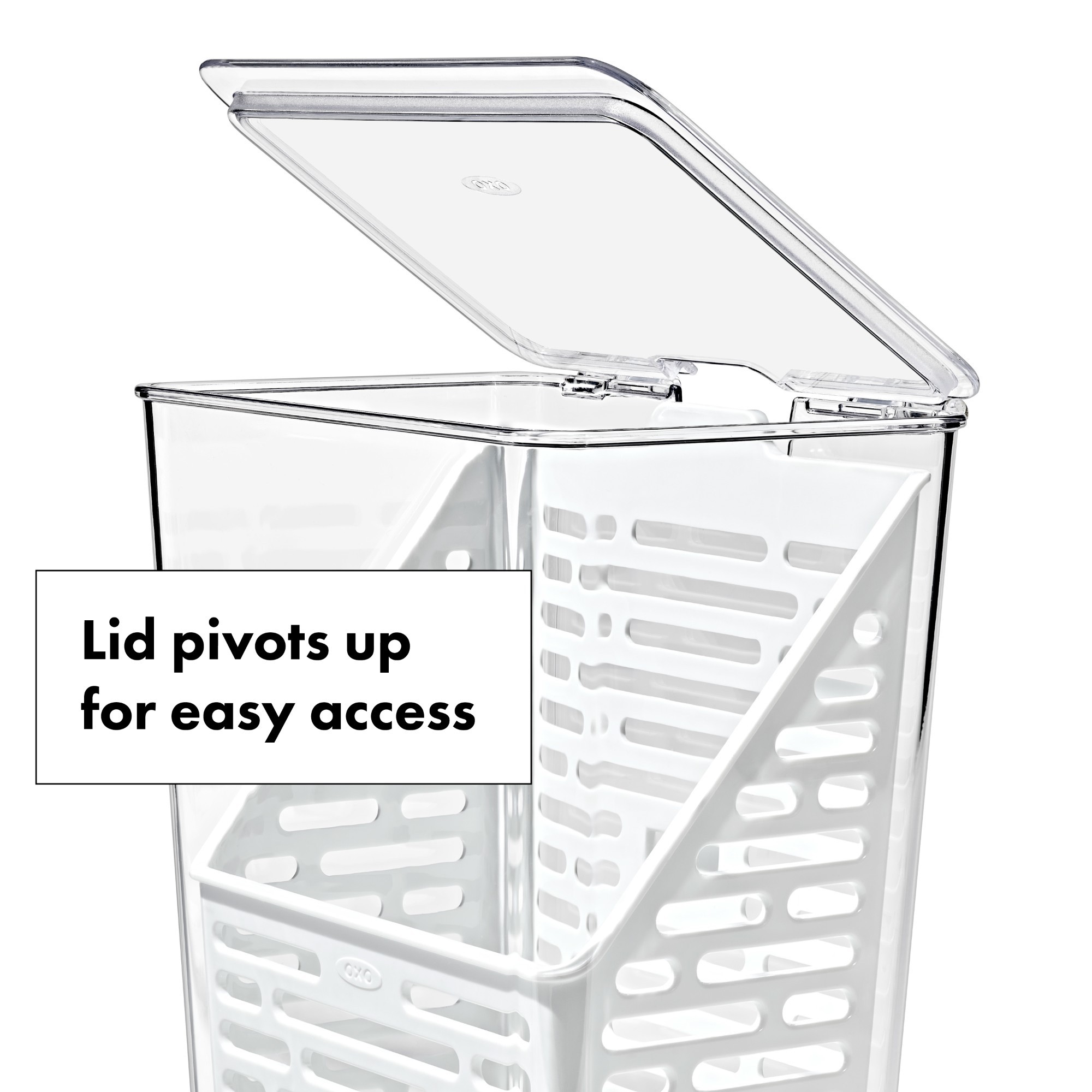 Az OXO Good Grips zöldségtároló dobozt úgy tervezték, hogy megőrizze az aromás fűszernövények, például a petrezselyem, a koriander, a kapor, a kakukkfű vagy a zsálya frissességét.