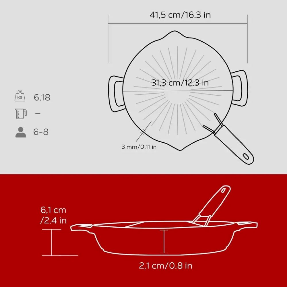 Tartósságának és a zománc kiváló minőségének köszönhetően a kerek LAVA öntöttvas grillserpenyő generációról generációra nélkülözhetetlen lesz családja számára. A zománcozott technológiának köszönhetően a grillserpenyőt mosogatógépben is tisztíthatja.