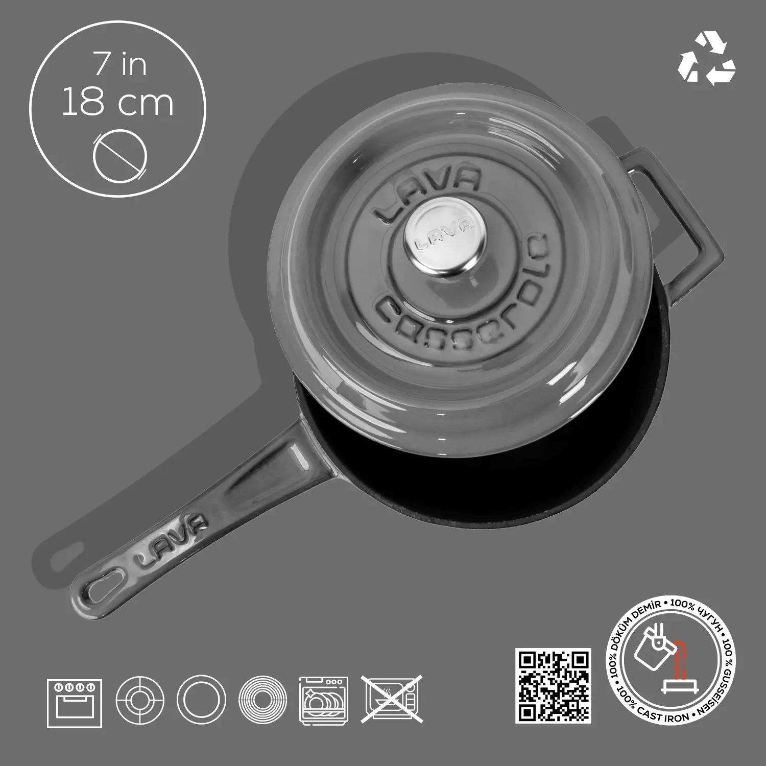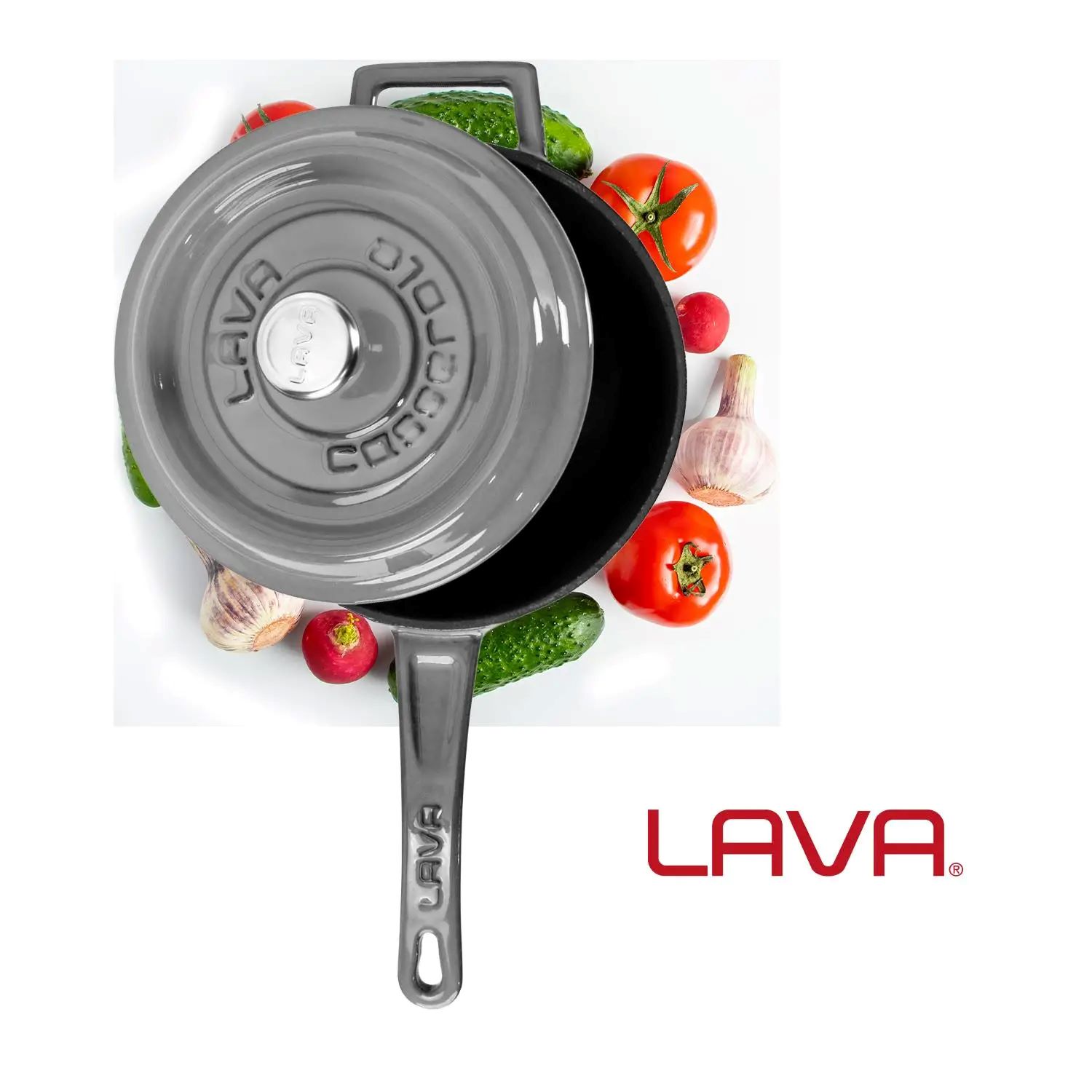 Az üveges zománcot, a LAVA öntöttvas edények külső bevonatának anyagát 750-850 °C hőmérsékletű üvegpor szórásával nyerik.