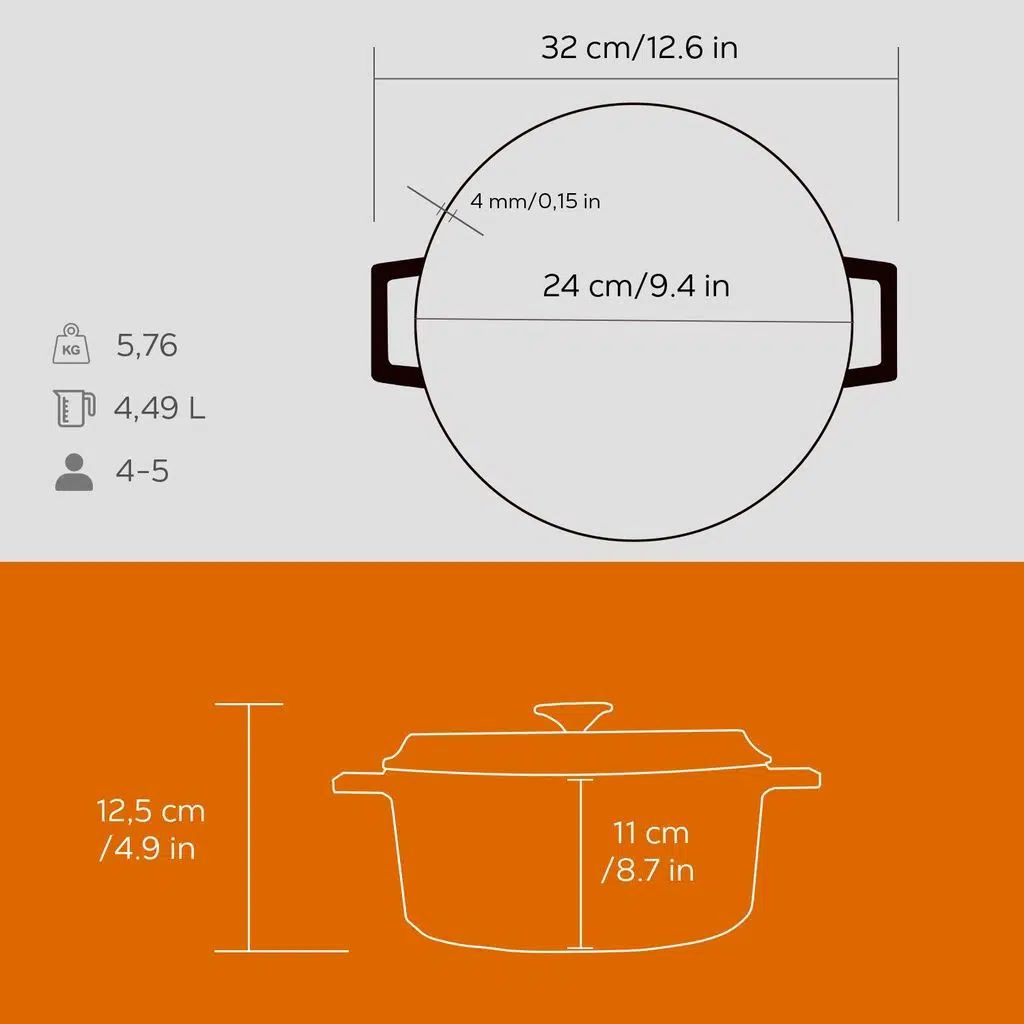 Az öntöttvas egy olyan anyag, amely lassan melegszik fel, de hevítés után sokáig nagyon jól megtartja a hőt. Így az edények a legtöbb főzési technikához alkalmasak, legyen szó sütésről, lassú főzésről vagy sütőben való főzésről.
