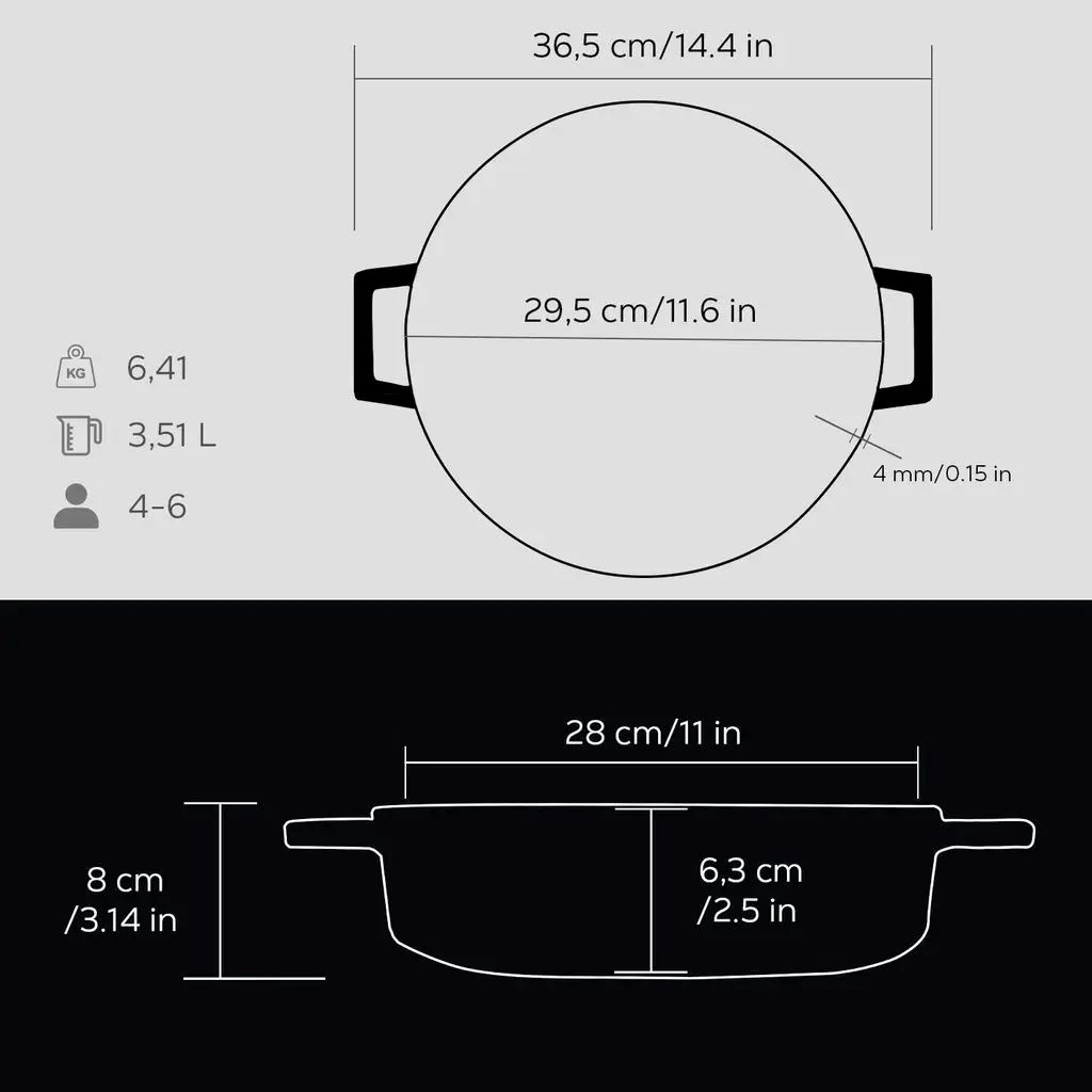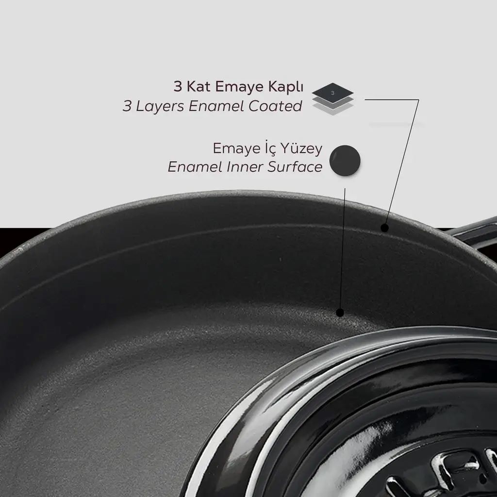 LAVA -"Trendy" Öntöttvas lábas, 28cm/3,5L, fekete