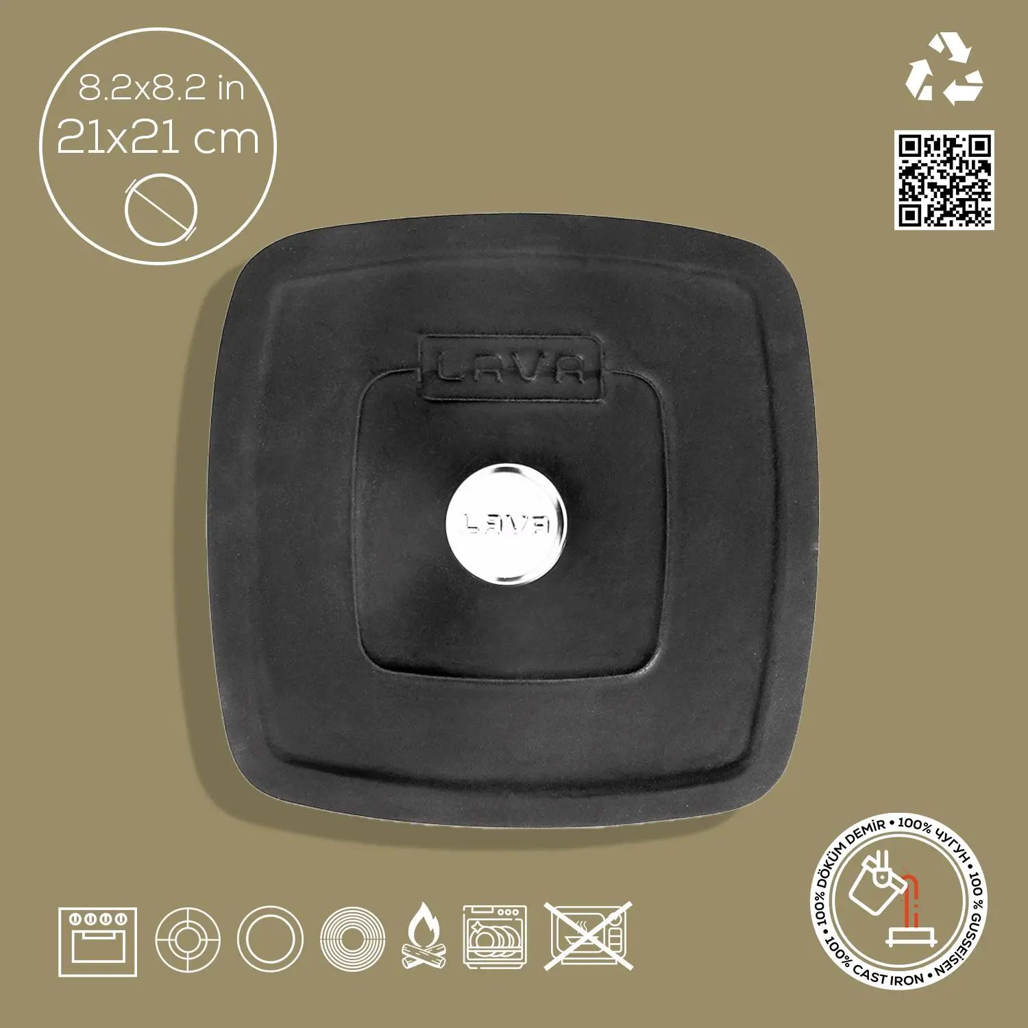 Grillprés, Lava márka, zománcozottöntöttvasból készült, mérete 20 × 20 cm.