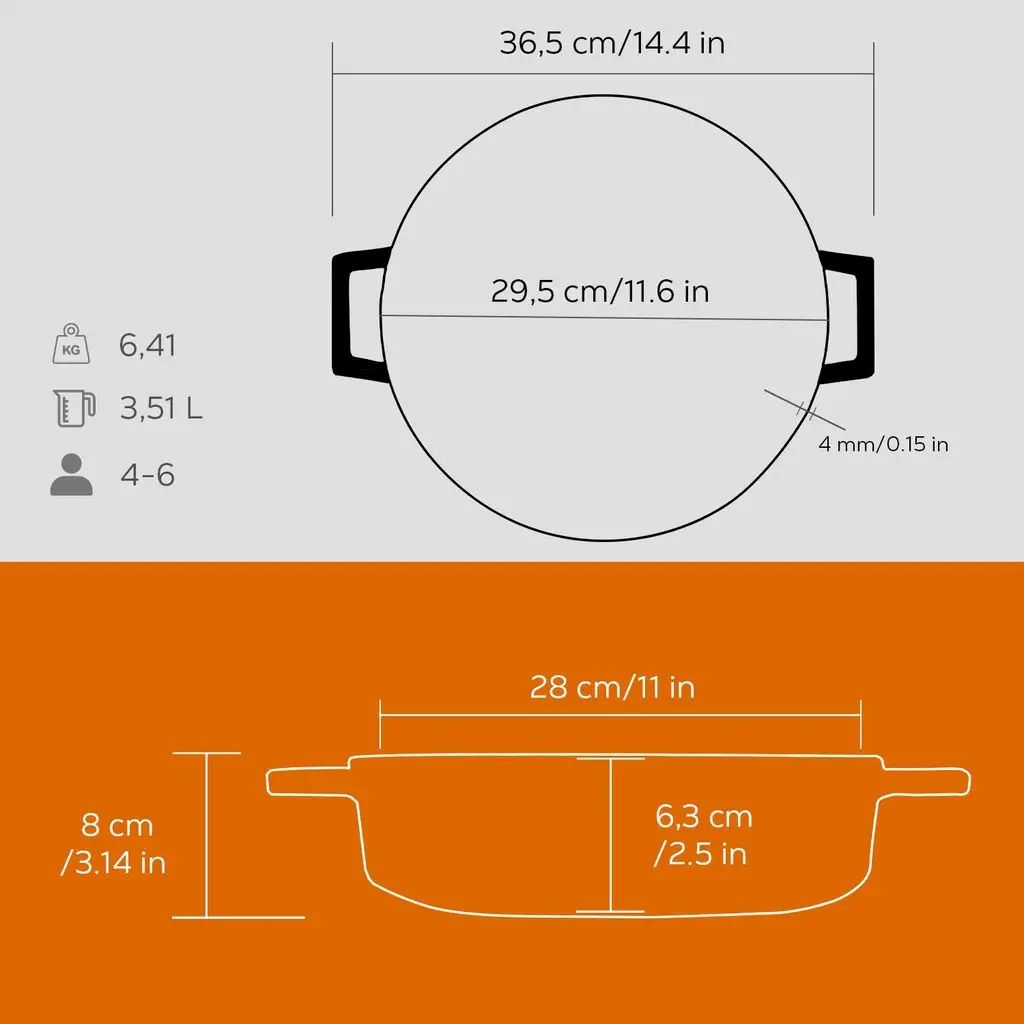 A lábas alja 5 mm vastag, ami lehetővé teszi a Lava edények használatát minden típusú főzőlapon, beleértve az indukciós főzőlapot is.
