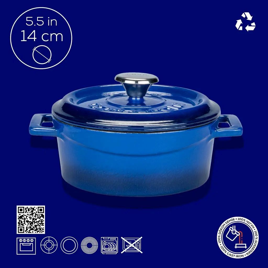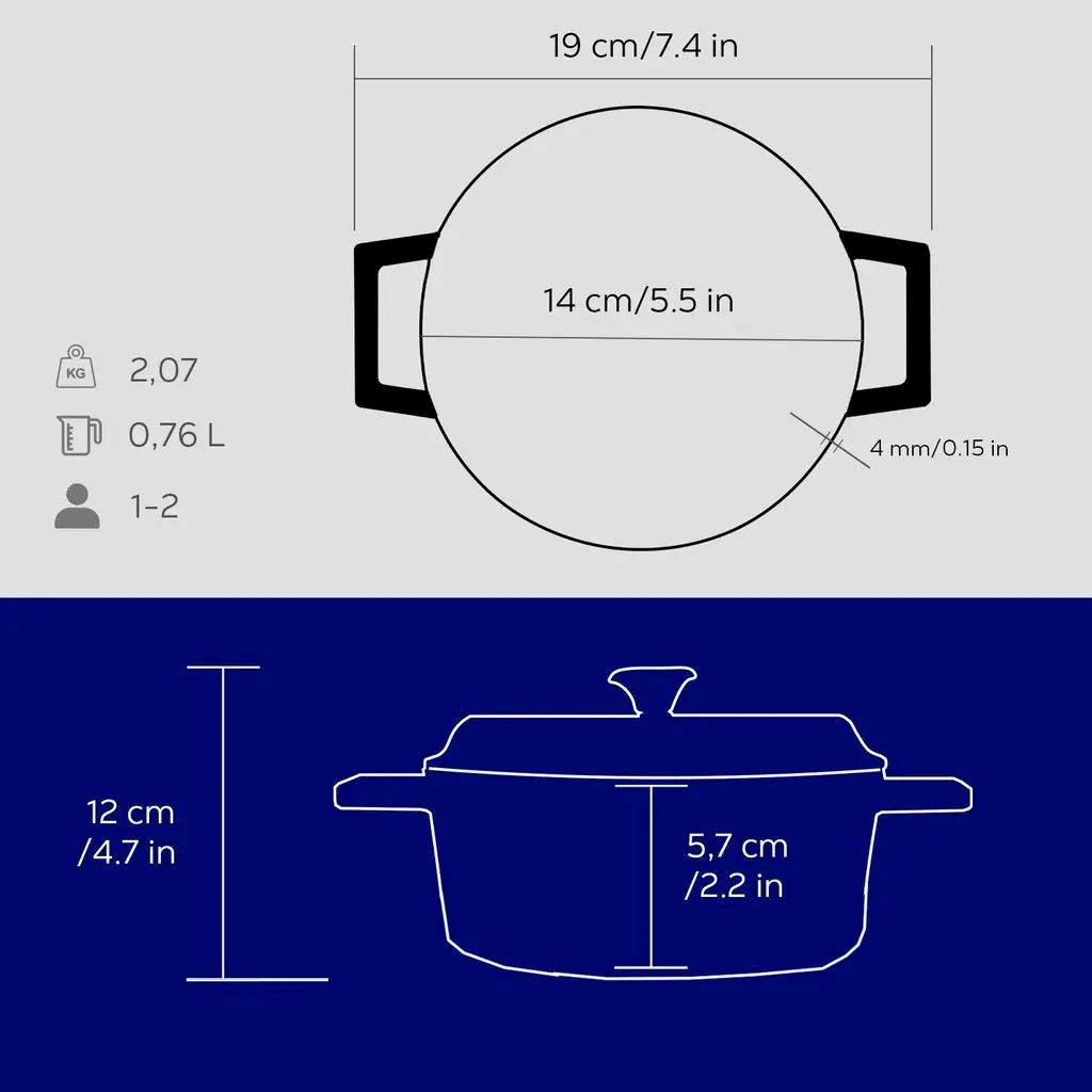 Lava lábas, átmérője 14 cm, űrtartalma 0,8 l, anyaga öntvény.