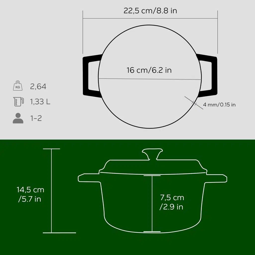 Lava lábas, átmérője 16 cm, űrtartalma 1 l, anyaga öntvény.