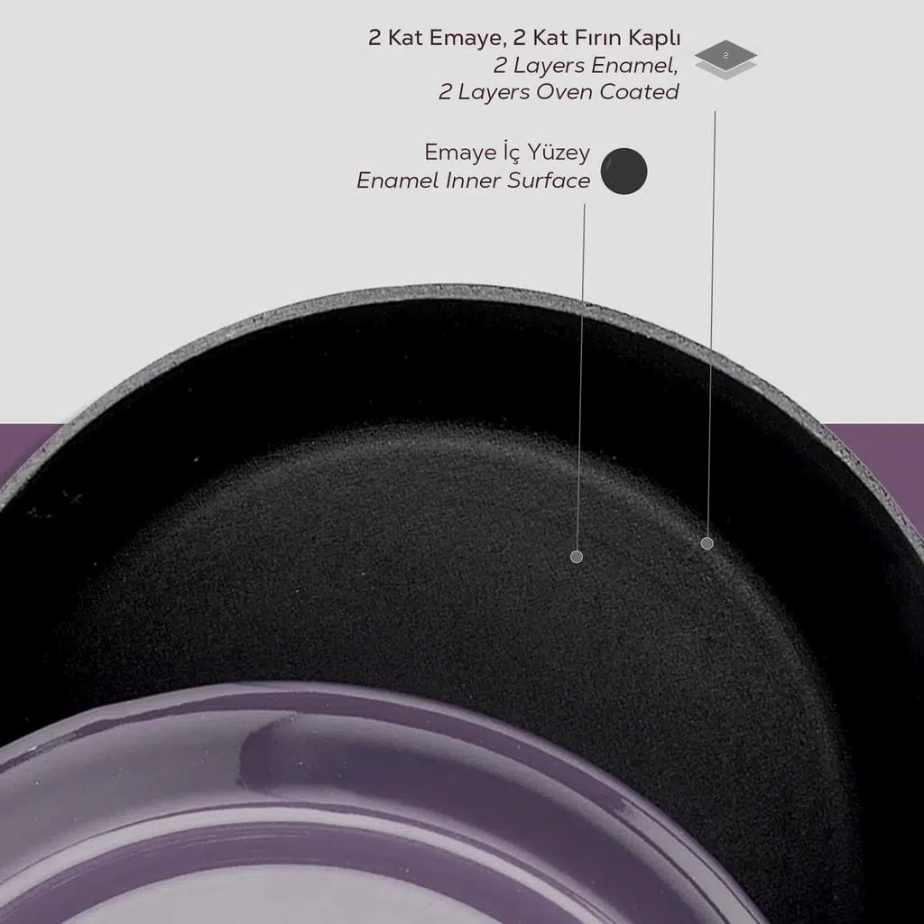 Az edény oldalának vastagsága 4mm. Belső felületén, fekete zománcréteg található amely tapadásmentes réteget képez amikor zsiradék nélkül főz.