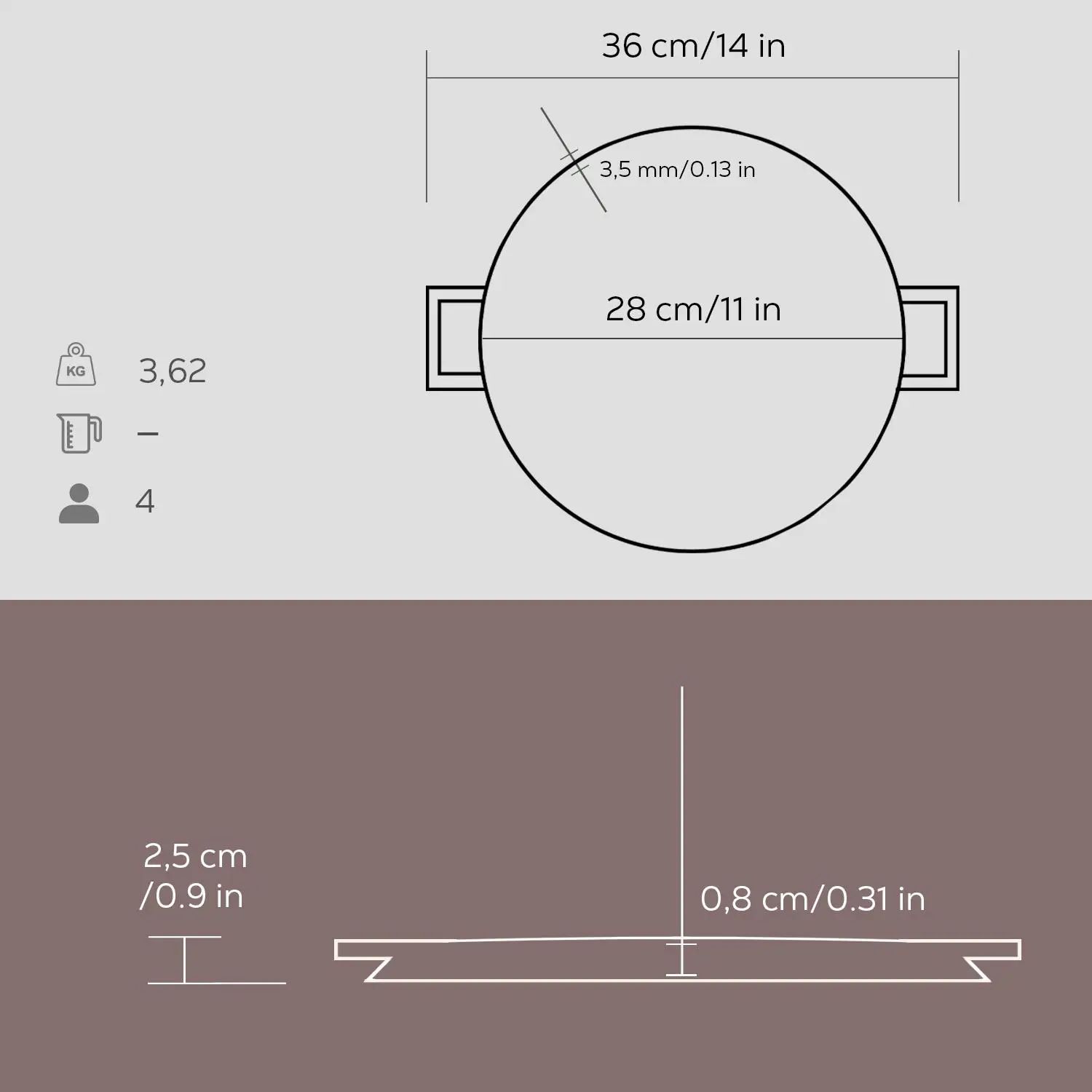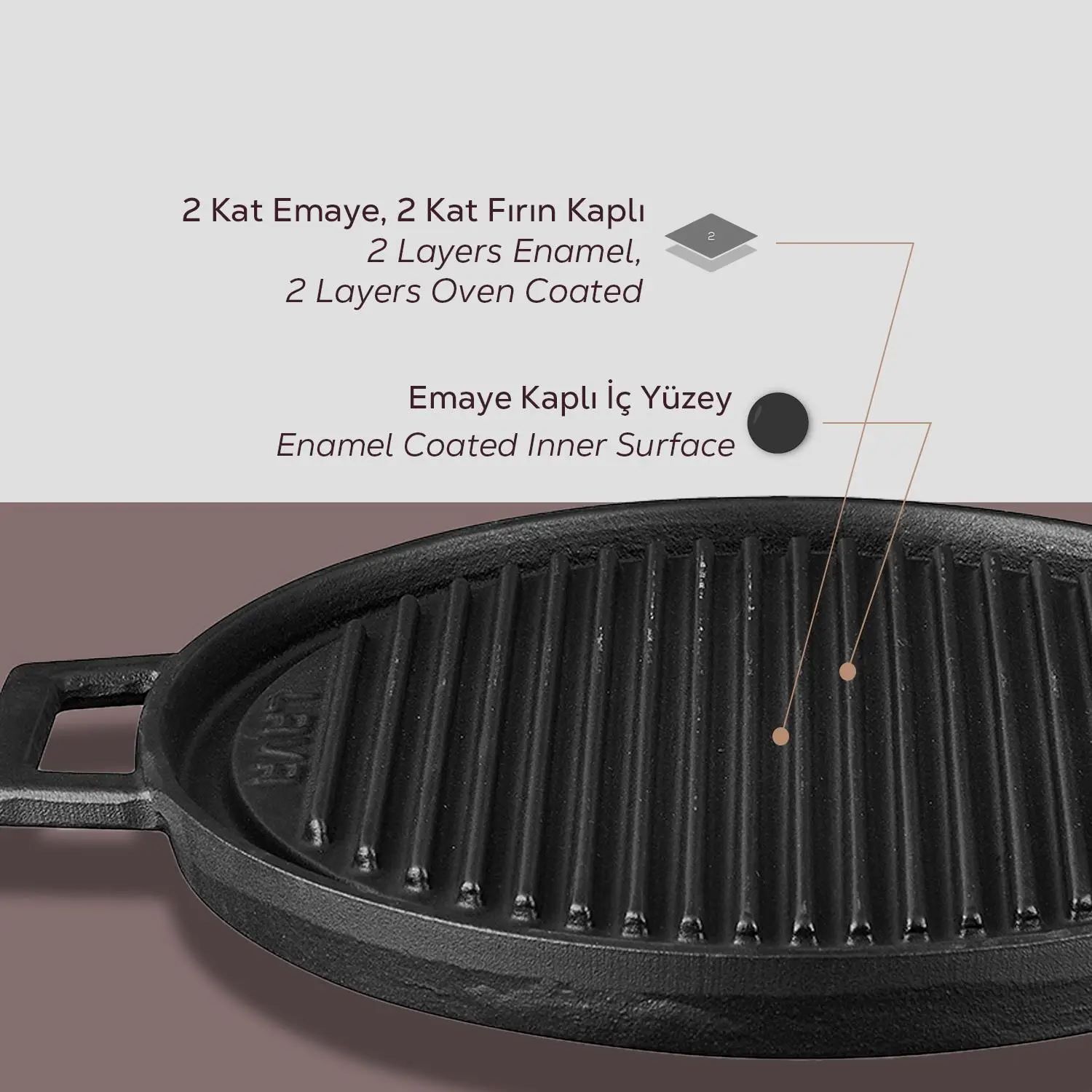A grillsütő belsejében 4 mm , a szélén pedig 3 mm vastag. A termék egy réteg fekete zománccal van bevonva, amely elősegíti a tapadásmentes felület kialakulását zsíros sütés esetén.