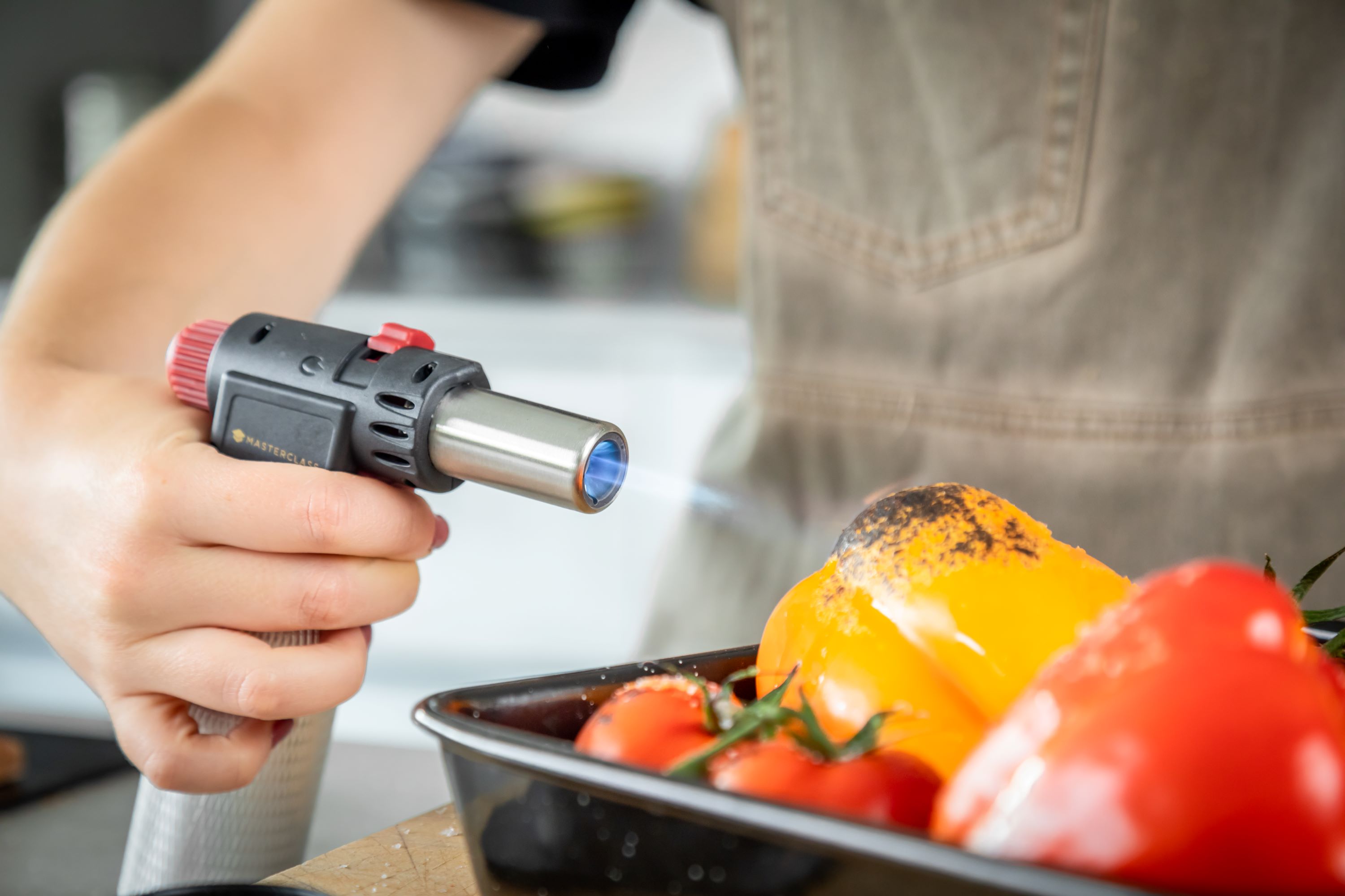 Paradicsom vagy paprika hámozására, karamellizált cukor készítésére, creme brulee, tarta tatin, glazúrozott sütemények készítésére mind használható a MasterClass gázégő.