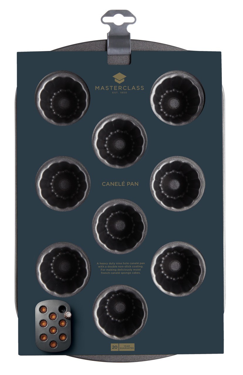 A MasterClass canneles sütőtepsi segítségével 9 ilyen apró süteményt készíthet (mindegyik forma 5cm x 5cm), de ugyanakkor felhasználhatja muffinok sütéséhez és zselék készítéséhez is.