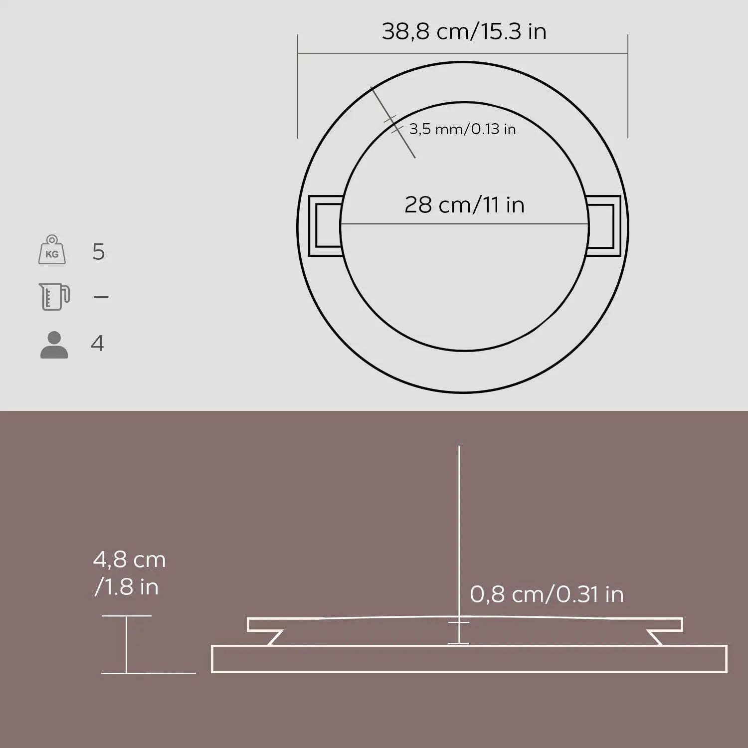 Az alap vastagsága középen 5 mm, a szélén 3,5 mm . A terméket egy réteg fekete zománc bevonattal látták el, amely elősegíti a tapadásmentes felület kialakulását zsíros főzés során.