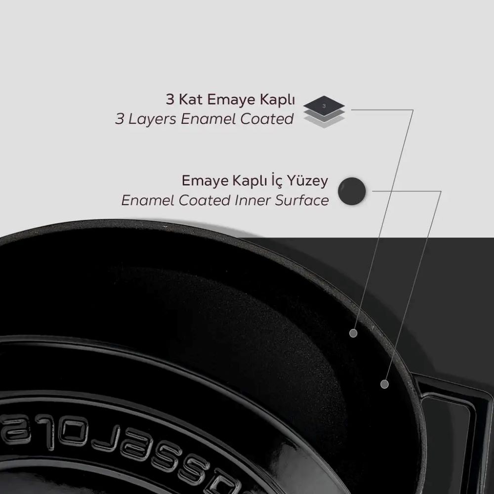 A serpenyő falai 4 mm vastagok. Belül aserpenyőt egy fekete zománcréteggel vonják be, amely megkönnyíti a tapadásmentes felület kialakulását zsírral történő főzéskor.