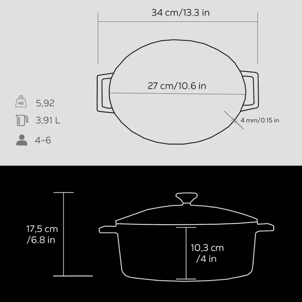 Az öntöttvas olyan anyag, amely lassan felmelegszik, de melegítés után hosszú ideig nagyon jól tartja a hőt. Így az edények a legtöbb főzési technikára alkalmasak, legyen szó sütésről, lassú főzésről vagy sütő főzéséről.