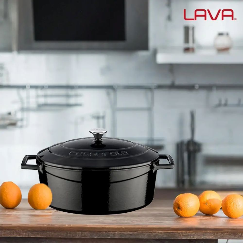 Ovális alakú serpenyő, Láva márka, átmérője 27 cm, kapacitása 3,9 l, öntöttvasból készült.