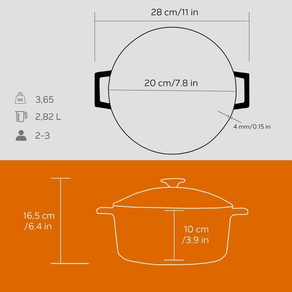 Láva lábas fedővel, átmérője 20 cm, kapacitása 2,82 l, öntöttvasból és üvegből