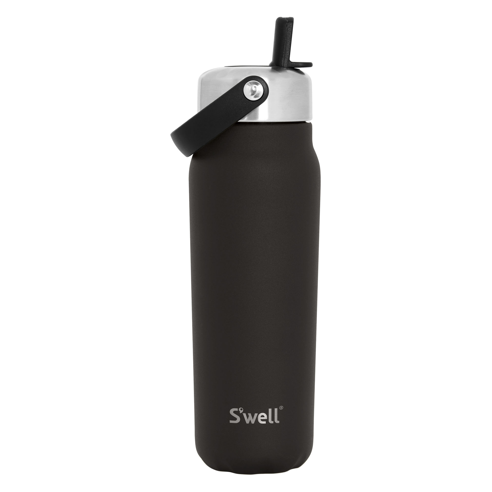 Szigetelt vizes palack beépített szalmával, kapacitása 700 ml, 18/8 rozsdamentes acélból, a S'well gyártja.