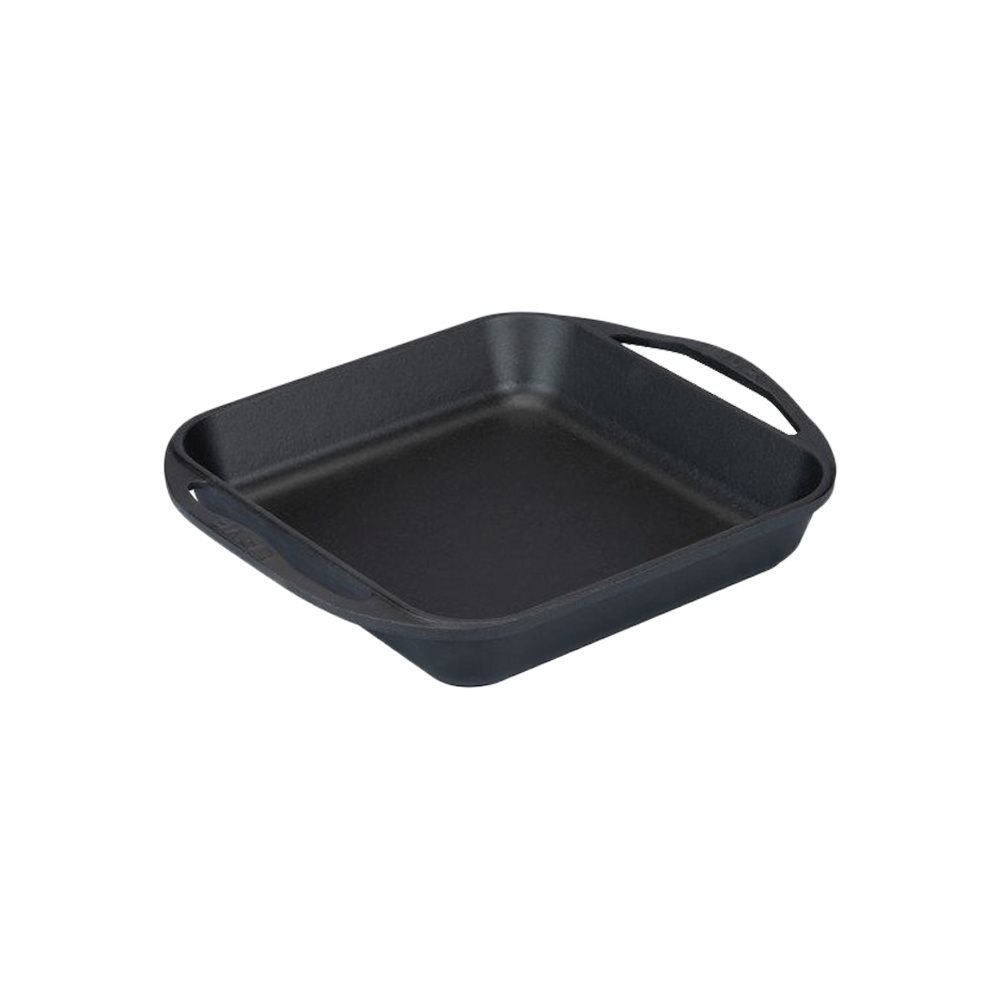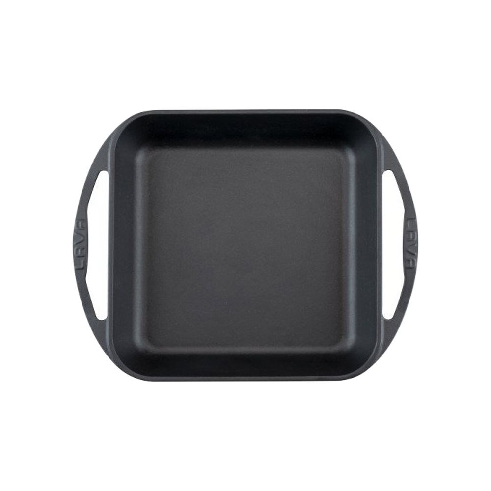 Öntöttvasból készült Lava négyzet alakú serpenyő, 26 × 26 cm méretű, 2,51 literes .