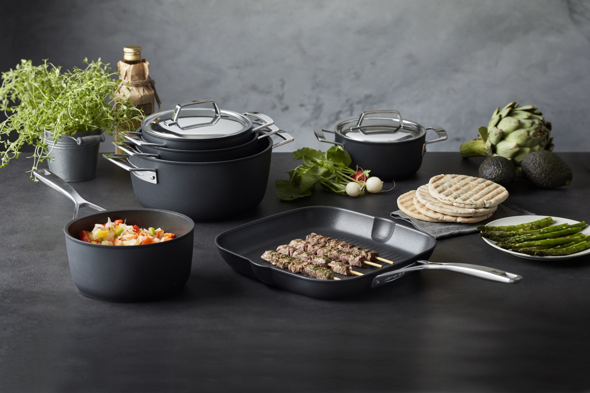 Az ergonomikus rozsdamentes acél fogantyúk kényelmesen megfoghatók, és a testhez szegecseltek a tartósság érdekében. A Ti-X tapadásmentes bevonat mosogatógépben mosható a gyors kioldás és az egyszerű tisztítás érdekében, valamint sütőben is használható 500 °F-ig.