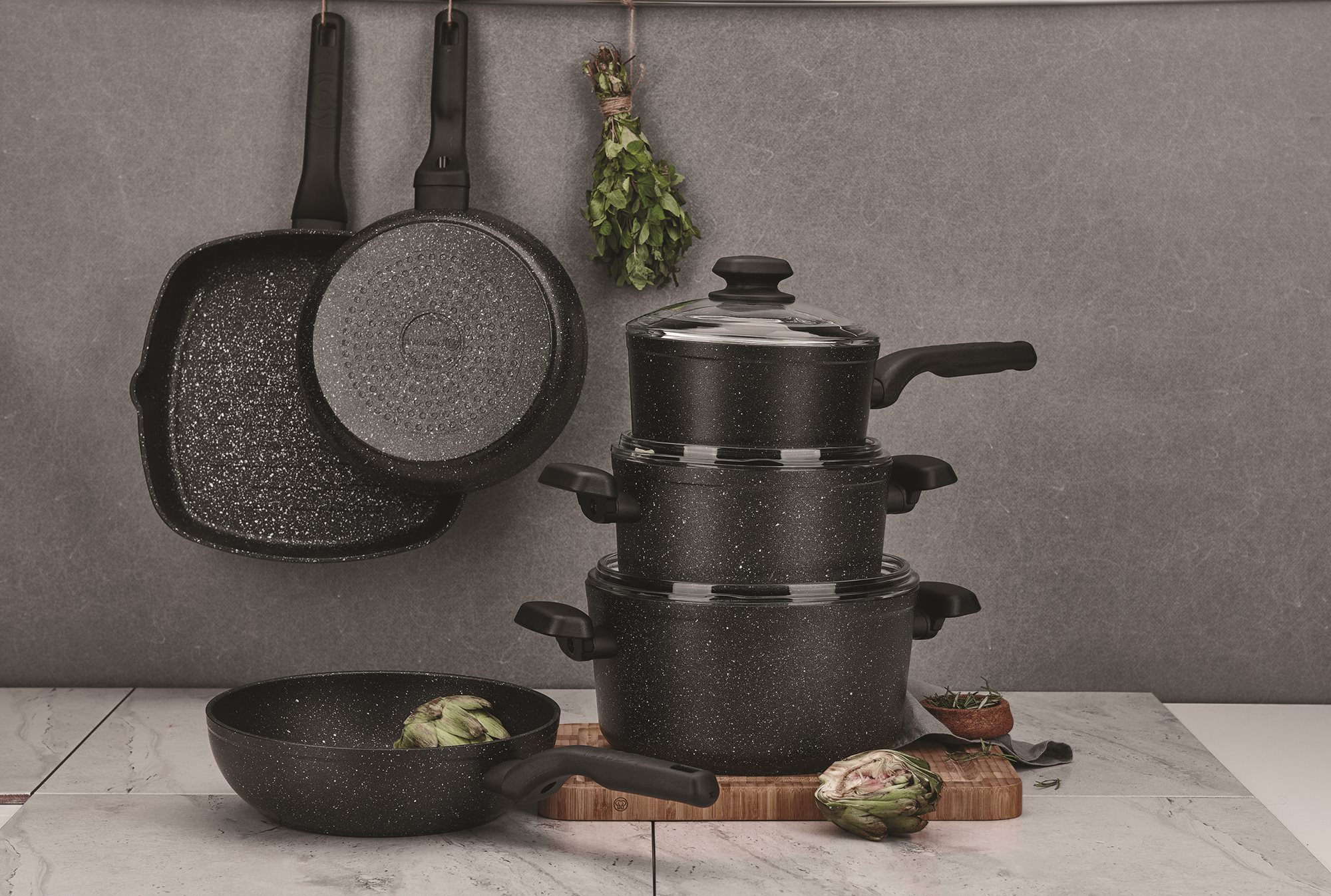 A belső tapadásmentes bevonat kiváló "Volkanit Coating" technológiát alkalmaz, amely kiváló tapadásmentességet és nagyon magas karcállóságot biztosít. Ezt a belső bevonatot a Weilburger gyártja, és 5 rétegből áll, amely akár 70 000 mosást is kibír. A tapadásmentes réteg nem tartalmaz PFOA-t, kadmiumot vagy ólmot, és segít egészséges és ízletes ételek elkészítésében kevesebb étolaj felhasználásával, mint más típusú edényekben.