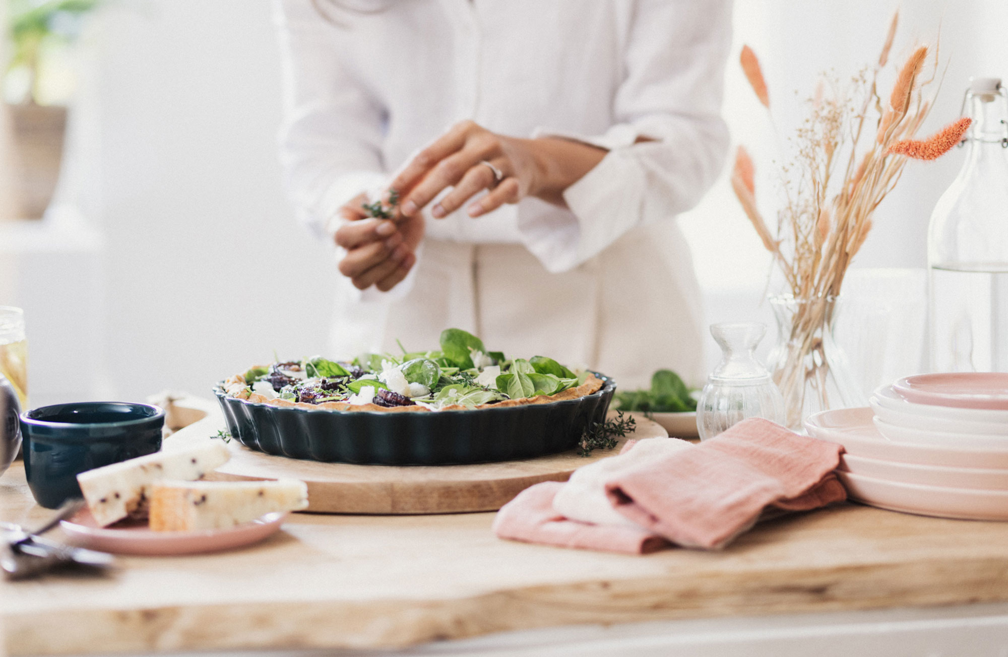 Tartós forma, átmérője 29,5 cm, magassága 4 cm (belső méretek 28 x 3,2 cm), űrtartalma 1,4 l , HR® kerámiából készült, Emile Henry márkájú.