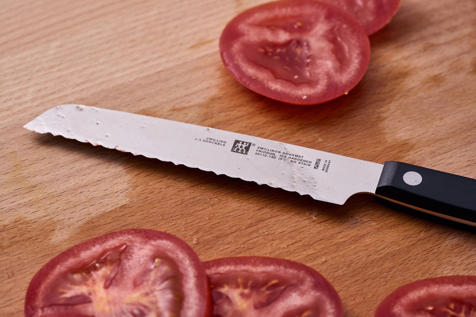 Univerzális kés, 13 cm- es fogazott pengével, speciális rozsdamentes acélból készült, amely masszív, korrózió- és ütésálló, ugyanakkor rugalmas, Zwilling márka