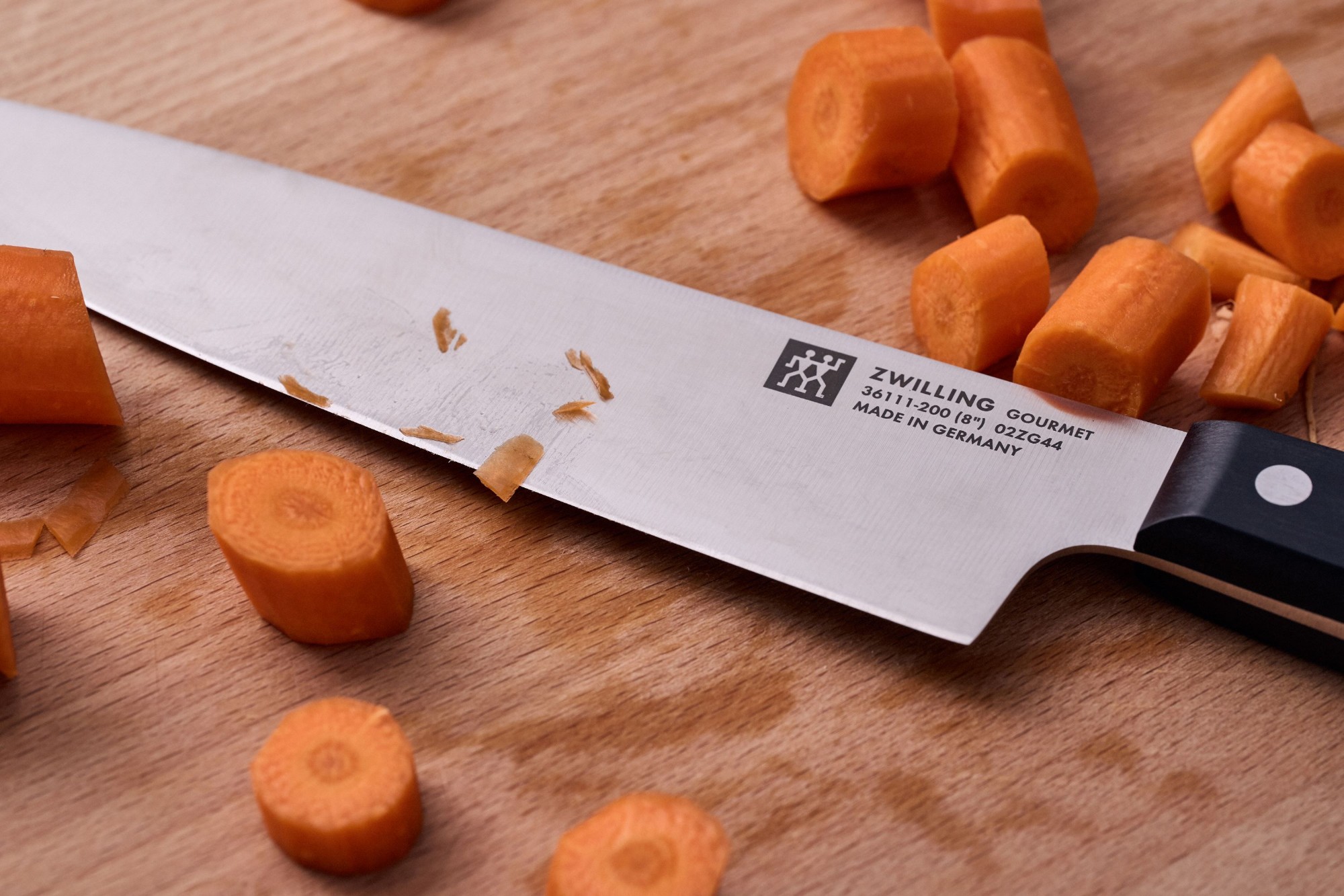 Szakácskés, 20 cm hosszú pengével, speciális rozsdamentes acélból készült, ami masszív, korrózió- és ütésálló, ugyanakkor rugalmas, Zwilling márka